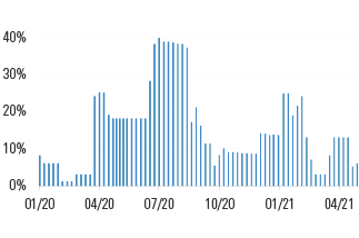 Andamento del livello di esposizione del Fondo alle strategie inflattive da inizio 2020